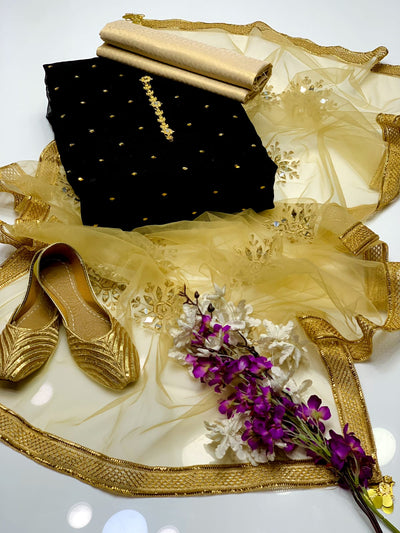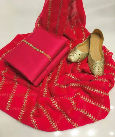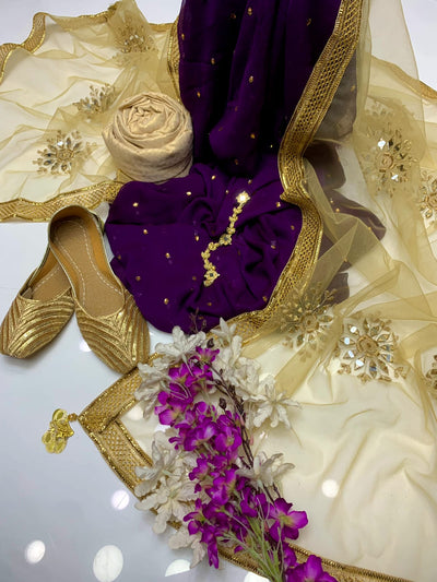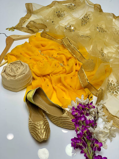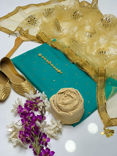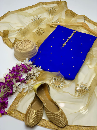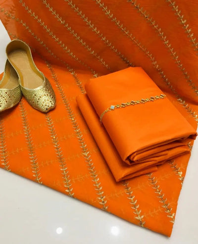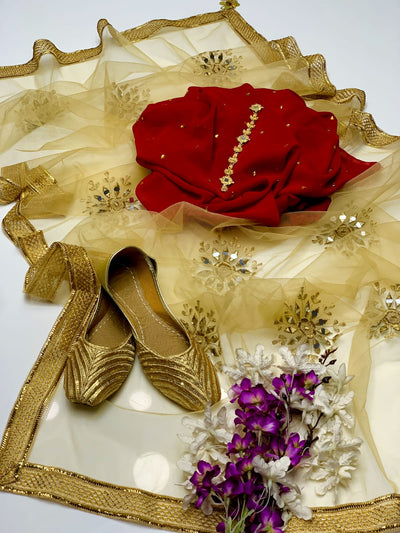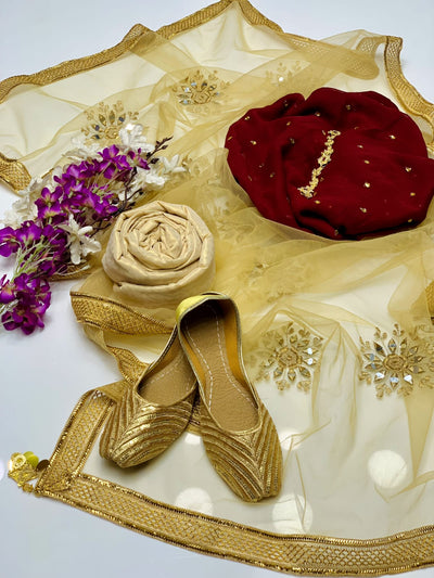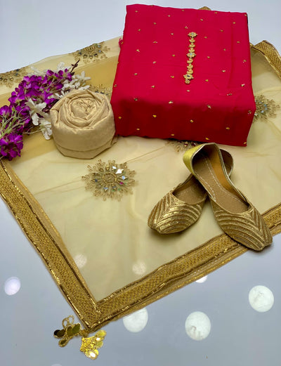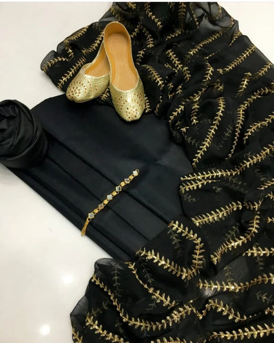 4 pcs Qattan silk suit organza dupata with Khussa