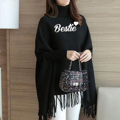 Black Printed Women Poncho ( Free Size)