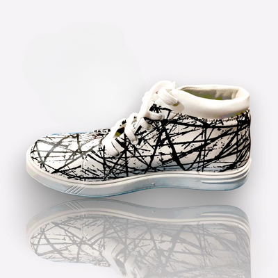 Black Pattern White Mesh Long Shoes