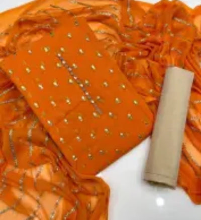 Crinkel chiffon emb shirt Crinkle chiffon heavy emb dupata Meauri trouser Neck line