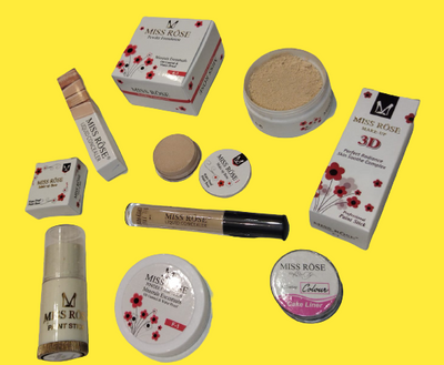 Deal of 10 - Miss Rose Compact Powder, 3d Foundation loose Powder .foundation Stick ,concealer .lipstick .foundation tube .kajal card .eyebrow . urgent facial .makeup kit