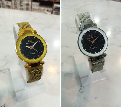 Fashion Eleven Klein Watch in Goden and White Color Round Dial for Women