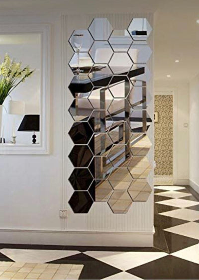 Hexagon Shape Acrylic Mirror Wall Stickers (12 Pc Set)