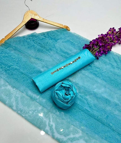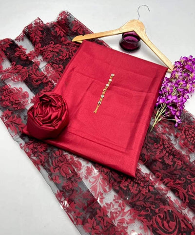 Qattan silk Unstitched shirt and trouser Organza dupata Neck line