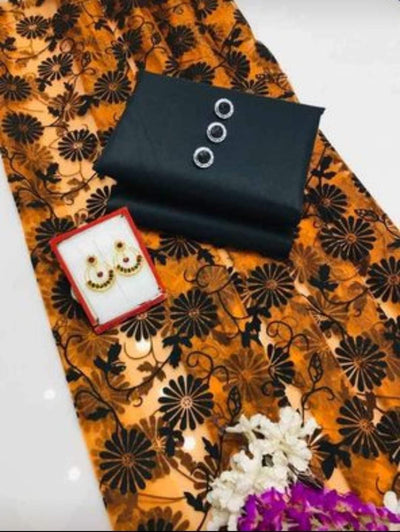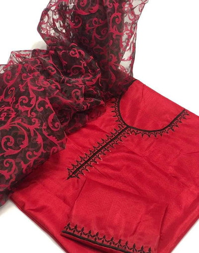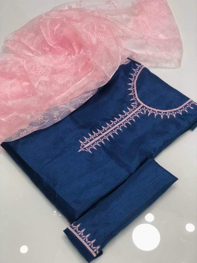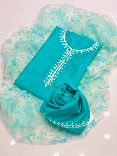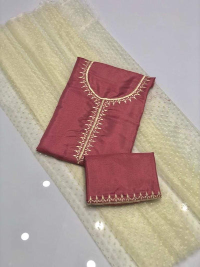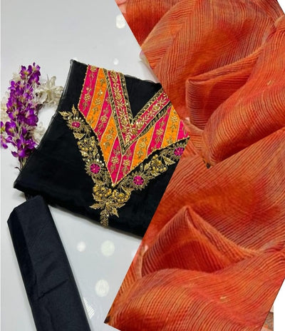 3 pcs Qattan silk embroidery shirt Qattan silk trouser (unstitched)