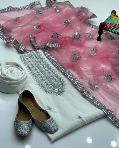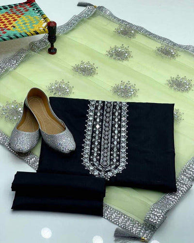 3 pice suit Qatan silk mirror work shirt and trouser Organza mirror work duptta