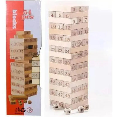 Wooden Jenga 54 pcs Numbers with Dice ( Imported )