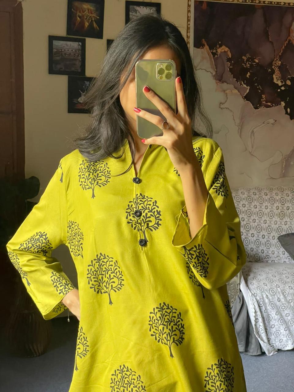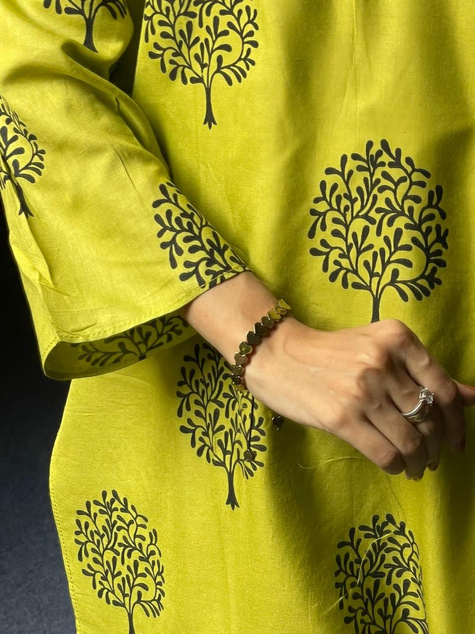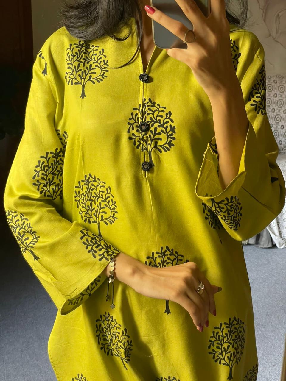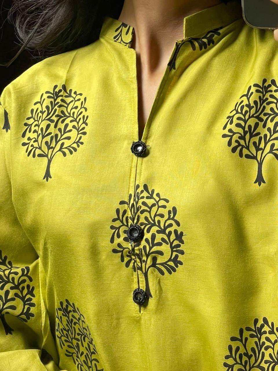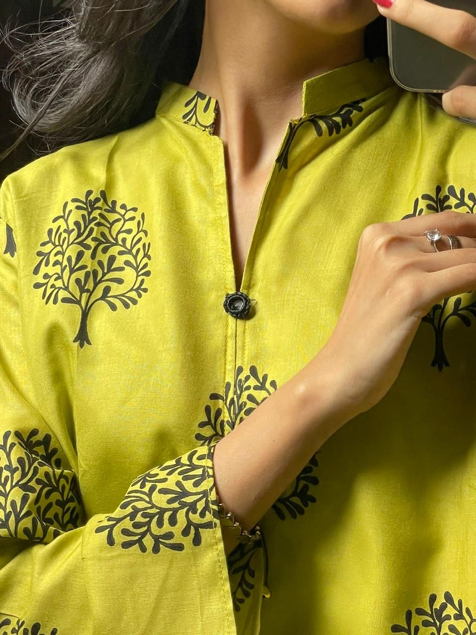 2 Pc Tree Design Beautiful Printed Shirt + Trouser (Banana Yellow)